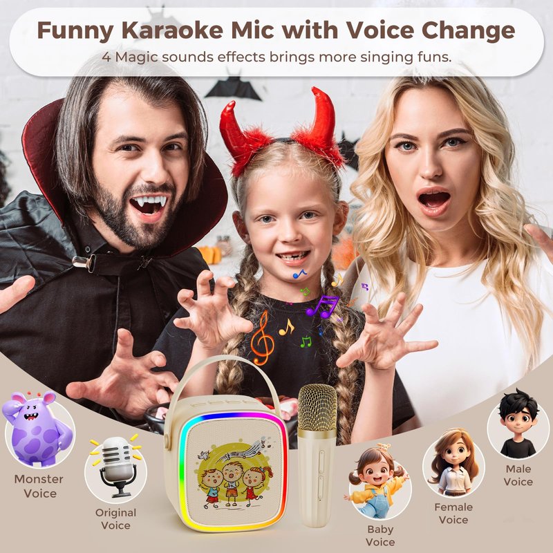 HWWR Karaoke Machine Microphone for Kids, Toys for Girls Boys Toddler, Mini Karaoke Speaker with Microphone, Christmas Birthday Gift for Family Adult Kids, Magic sounds voice change function for halloween. Mini karaoke machine with wireless microphones