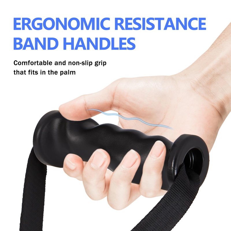 - Ergonomic Exercise Handles:The ergonomic grip fits the palm of the hand, guides the correct hand posture, and reduces the pressure on the wrist. Accommodate all hand sizes. The upgraded exercise band handles bring you a new training experience