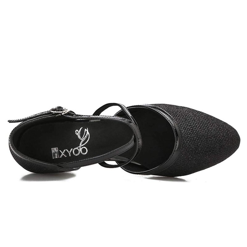 HXYOO Closed Toe Low Heel Glitter Ballroom Dance Shoes for Women Salsa Latin Wedding Party 1 1/2“ Heel S11-1(Black-1 1/2",7)