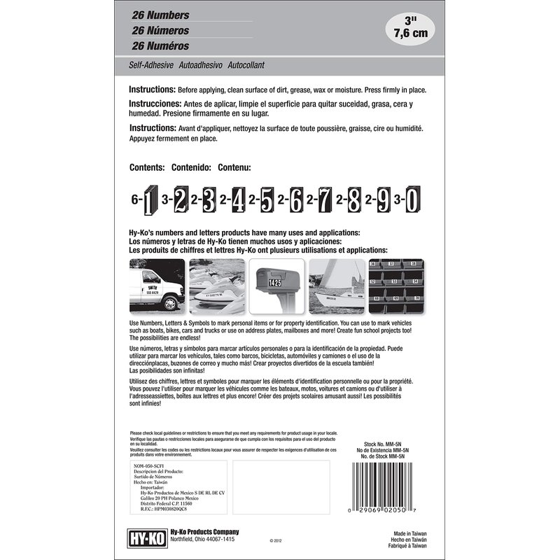 - Style: 3" Numbers