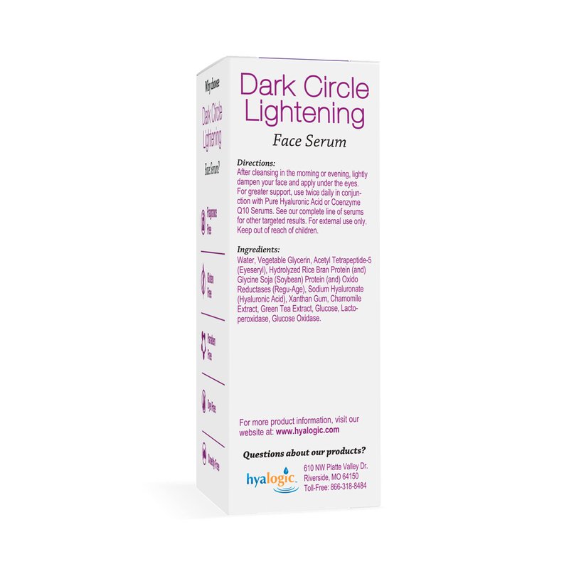 - Lighten dark eye circles with Hyalogic's eye brightening serum with Hyaluronic Acid, Regu-Age & Eyeseryl