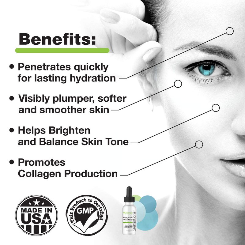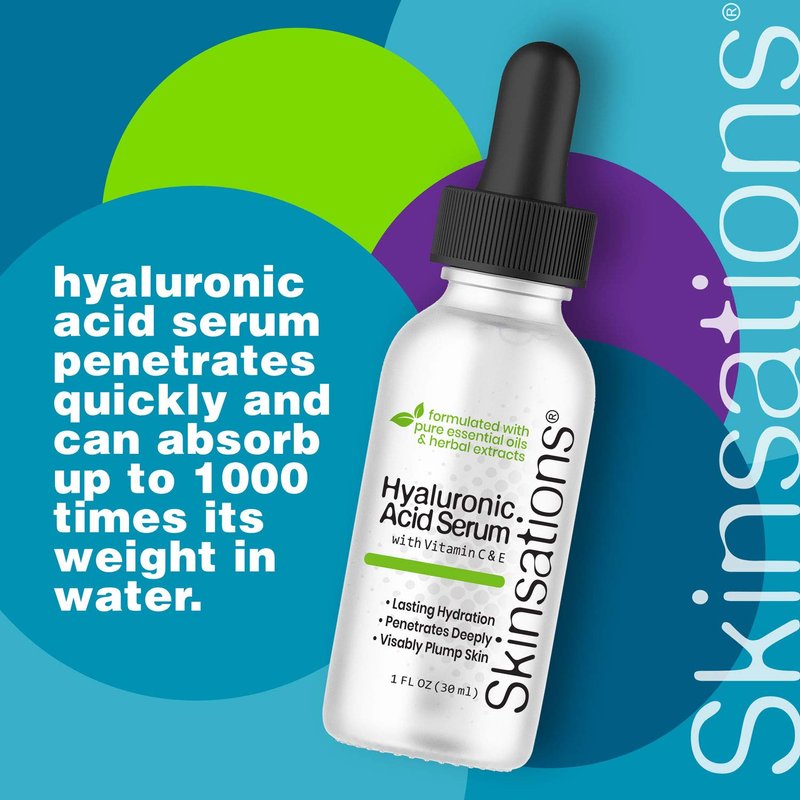 Hyaluronic Acid Serum for Face - Skinsations | Daily Moisturizer with Organic Botanical Extracts | Vitamin C, Vitamin E, Green Tea Extract