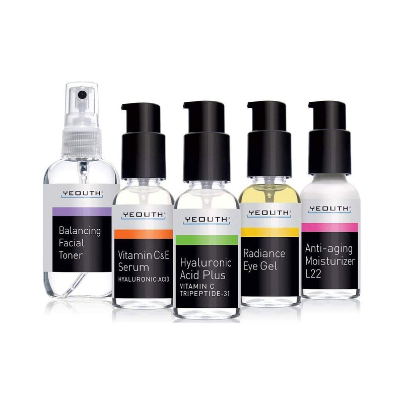 - YEOUTH Hydrate & Nourish Skincare Essentials Plus Kit Toner + Vitamin C + Hyaluronic Acid Serum + Eye Gel + Face Cream. Made in the USA! Owned by a Cosmetic Chemist. Natural, Paraben-free. Dermatology Tested. Complete skincare from YEOUTH!