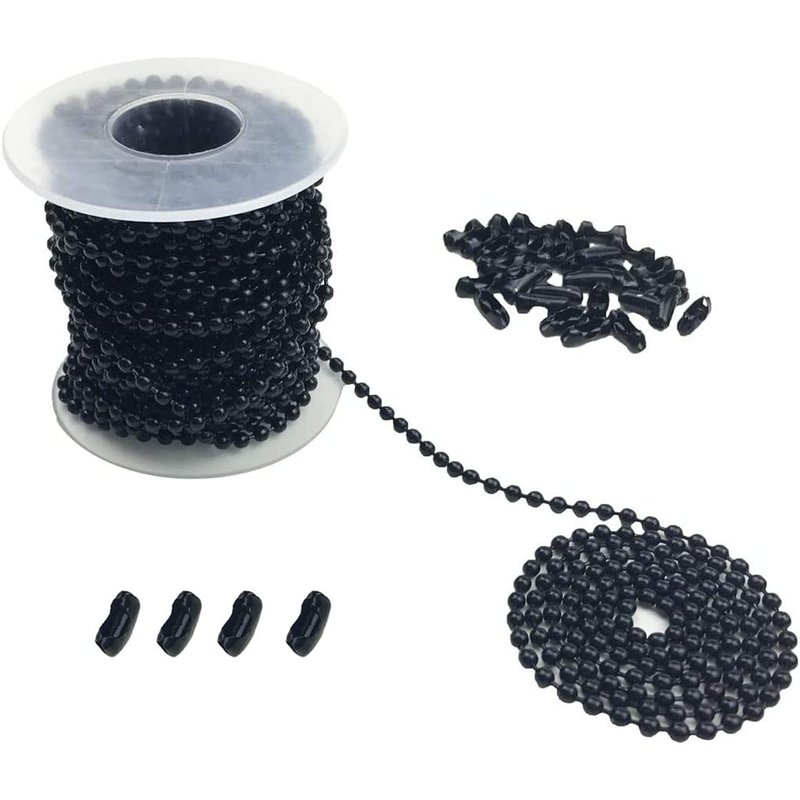 - Package includes 1 roll 10 yards black pull chain and 30 matching connectors; Notice: 3.2 mm diameter bead chain that is not suitable for replacing the roller blind and shutters bead chain;4.5 mm diameter bead chain is suitable for replacing the roller blind and shutters bead chain; Please make sure the replacement diameter of ball size pull chain when you buy it