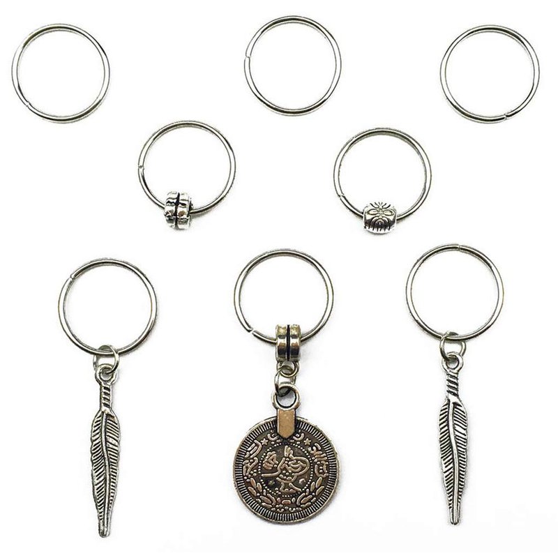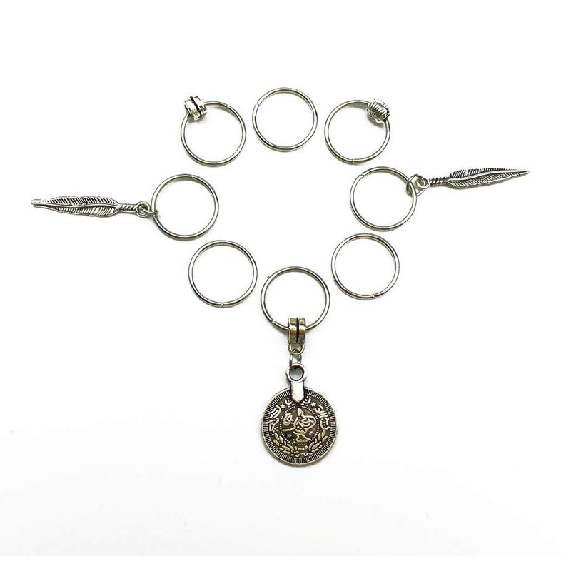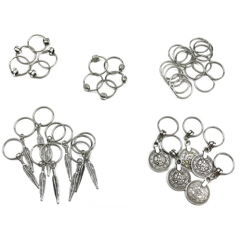 Hyamass 40pcs Antique Silver Ring Feather Coin Bead Charms Pendant Braid Hair Clip Headband Hair Accessories