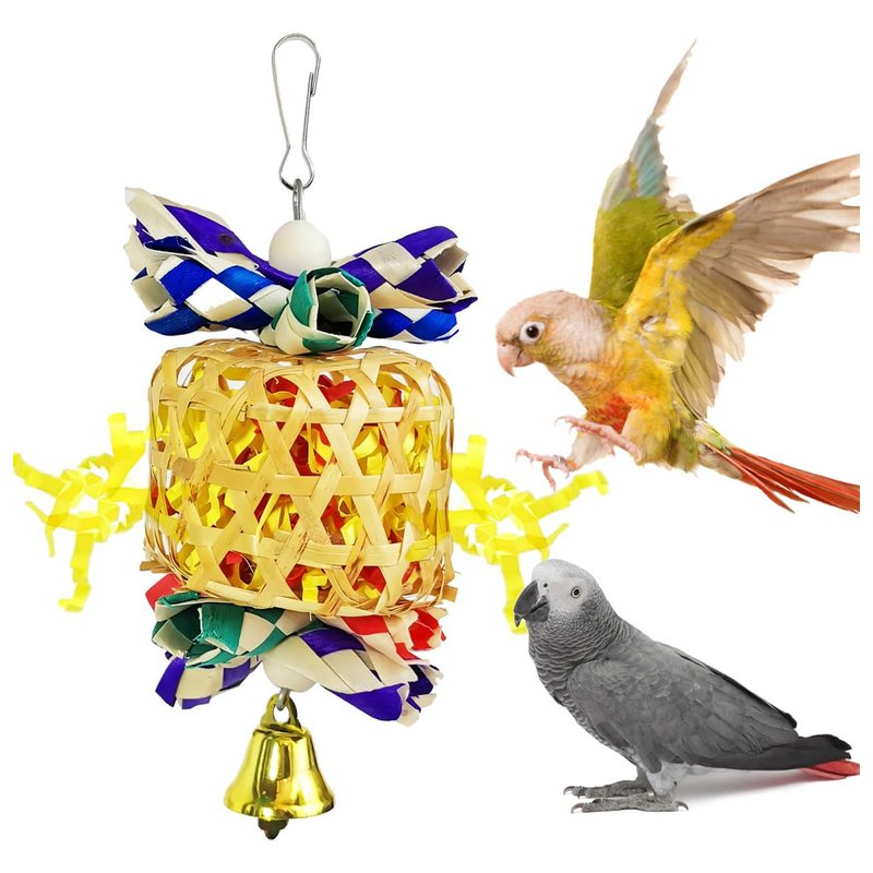 Easy to Use - With hook design, convenient to install. The Parrot Toy provides essential physical activities to keep your pets happy. The toy features a hook that makes installation a breeze. Simply hang it inside your bird's cage or play area, and they can immediately start enjoying the toy.