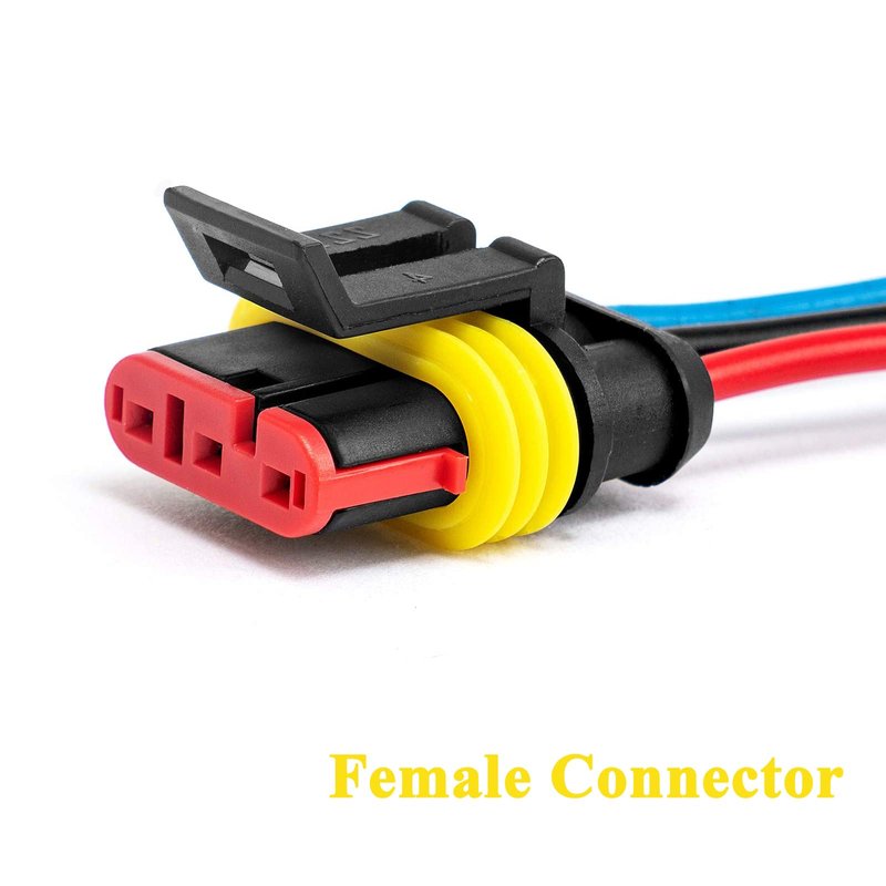 - Specification:3 pin male & female waterproof connectors with 18AWG 10cm wire.