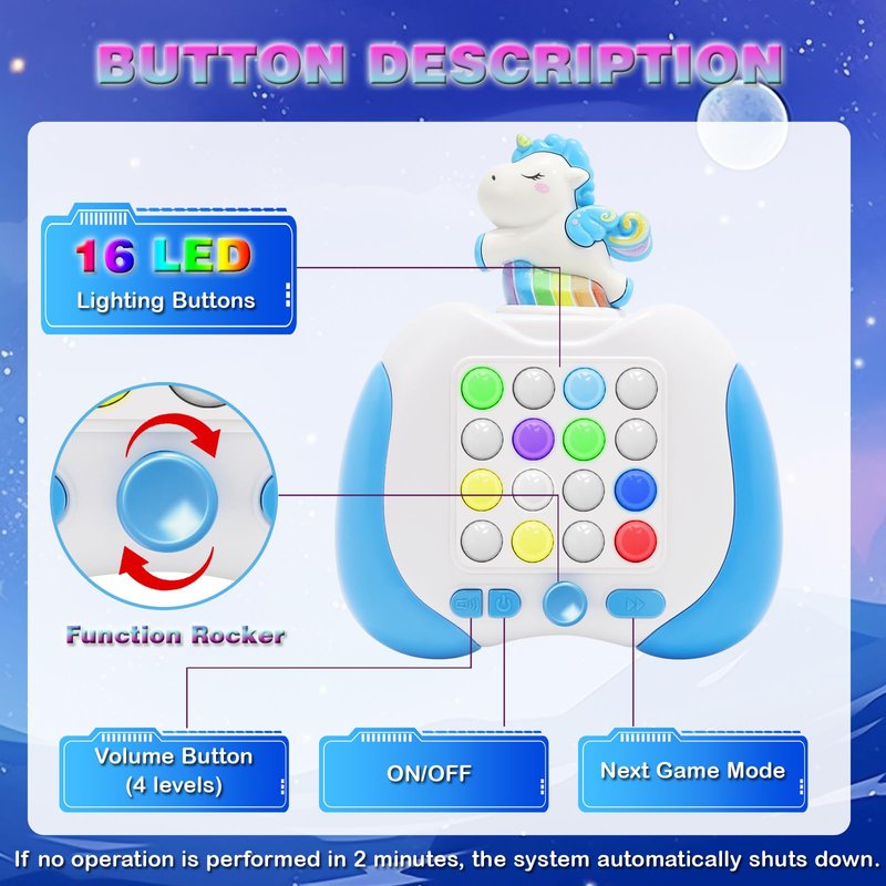 Hydrathy Quick Push Fidget Toys, Handheld Game for Kids 3-12 with 7 Game Mode, Fast Push LED Buttons Light Battle Game, Travel Games Xmas Birthday Gifts for Boys Girls Teens Adults (Unicorn-Blue)