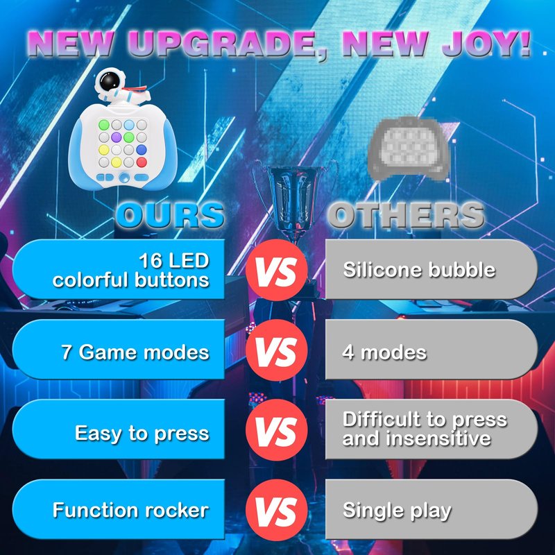 - Light Battle Handheld Game : - Newly upgraded quick push lighting battle game machine, 16 LED silicone lighting buttons with 7 game modes and 999+ levels. Cartoon animal design can attract children's attention!