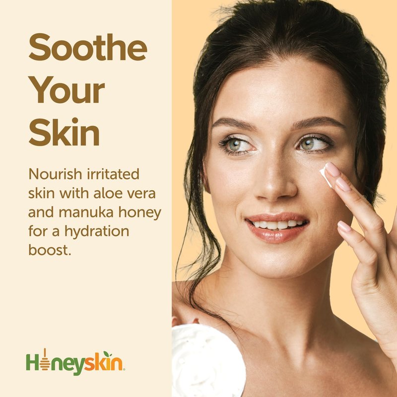 Honeyskin Ultimate Face & Body Cream delivers restorative and nutrient-enriched relief from a wide array of skin conditions, making it ideal for even the most sensitive skin. This anti-itch cream soothes and nourishes extremely dry, distressed skin, itching, acne, sunburn, rashes, eczema, psoriasis, seborrheic dermatitis, rosacea, and more! Our best-selling face and body moisturizer penetrates deeply to provide rejuvenating and replenishing moisture, giving you soft, smooth, healthy, and balanced skin. Ultimate Face & Body Cream is infused with some of nature’s most powerful ingredients to nourish, rejuvenate, and restore your skin, including a powerful blend of manuka honey, wild oat extract, aloe vera, shea butter, cehami, coconut oil, and more. This moisturizing body cream promotes skin cell regeneration and collagen production, visibly reducing the appearance of fine lines, wrinkles, dark spots, hyperpigmentation, under-eye circles, and more! Our anti-aging face moisturizer also firms, lifts, and restores skin elasticity for healthier, younger-looking skin.