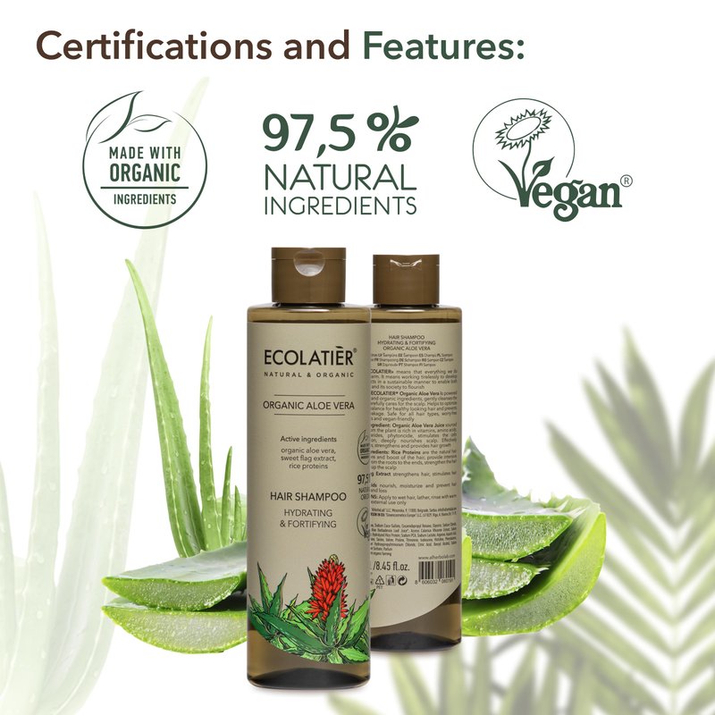 Protection First: Choose ECOLATIER for a pure and gentle cleansing experience suitable for all hair types. Our ECOLATIER Hair Products are of natural origin, ensuring safety and peace of mind. Aloe Vera Goodness: Our Aloe Vera Shampoo is a source of rich nourishment with Organic Aloe Vera Juice, filled with vitamins, amino acids, and phytoncides. New Formula Highlights: This Hydrating Shampoo now includes Organic Aloe Vera Juice, a natural elixir that nourishes the scalp. Active ingredients like Rice Proteins act as natural hair fillers, while Sweet Flag Extract stimulates hair growth. Vegan and Sustainable: Like all ECOLATIER Hair Products, this shampoo is Vegan Certified and focuses on sustainability. Cost-Effective Care: Experience the synergistic effects of our ECOLATIER Shampoo and Conditioner without breaking the bank. How to Use: For optimal results, apply this Moisturizing Shampoo to wet hair, lather, and rinse with warm water. For external use only. Structure: Organic Aloe Vera Juice, a cornerstone in this Aloe Vera Shampoo, is rich in vitamins, amino acids, and polysaccharides. It stimulates cell regeneration and deeply nourishes the scalp. Effectively moisturizes, strengthens, and promotes hair growth. Rice Proteins are natural hair fillers that provide intensive nourishment from the roots to the ends. Sweet Flag Extract enhances hair strength and stimulates growth. Amino acids prevent hair breakage and loss.