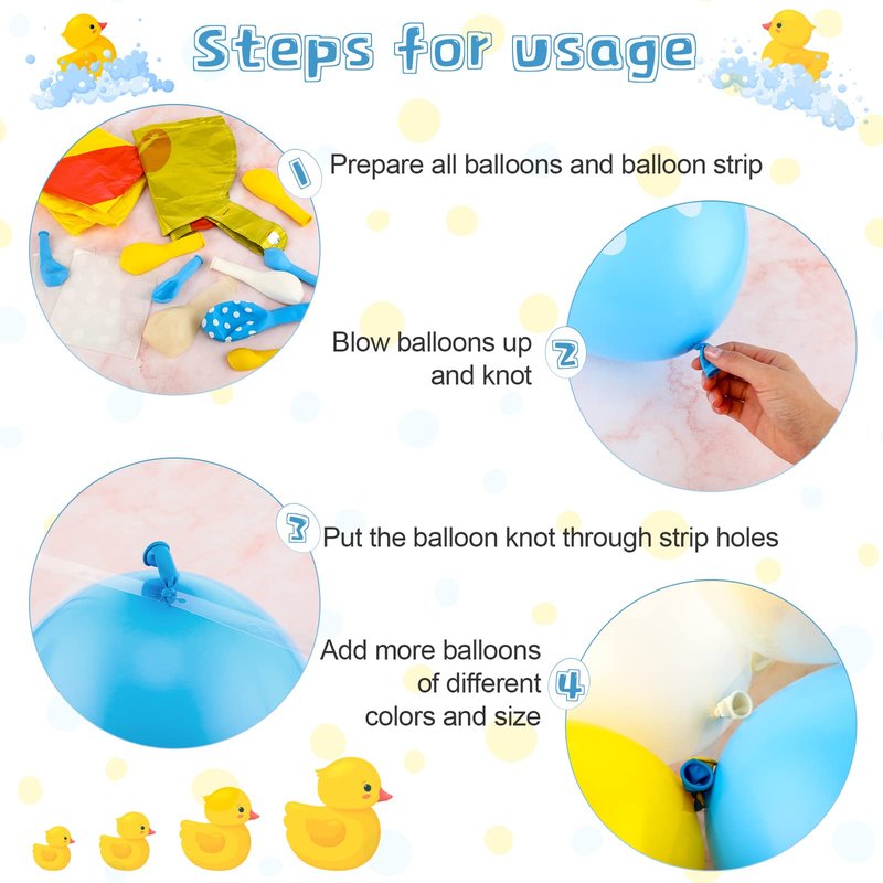 - Suitable Occasion: this cute duck balloon arch kit is suitable for rubber duck themed parties, birthday parties, baby showers, gender reveal parties, animal themed parties, outdoor celebrations and other events