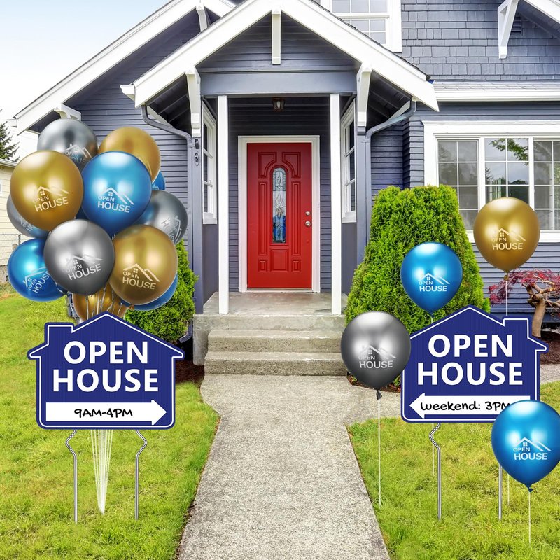 HyDren 72 Pcs Open House Balloons House for Sale Balloons 15.7 Inches Metallic Balloons for Real Estate Balloons Supplies Signs for Open House Yard Sign House Signs