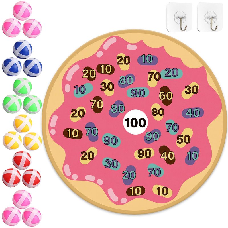 - Fun Game: the donut dart board game is not just entertaining, but also educational; It tasks players with throwing sticky balls onto the board, a process that enhances hand eye coordination and concentration levels; Additionally, the game encourages little one to count their scores, thereby refining their counting skills
