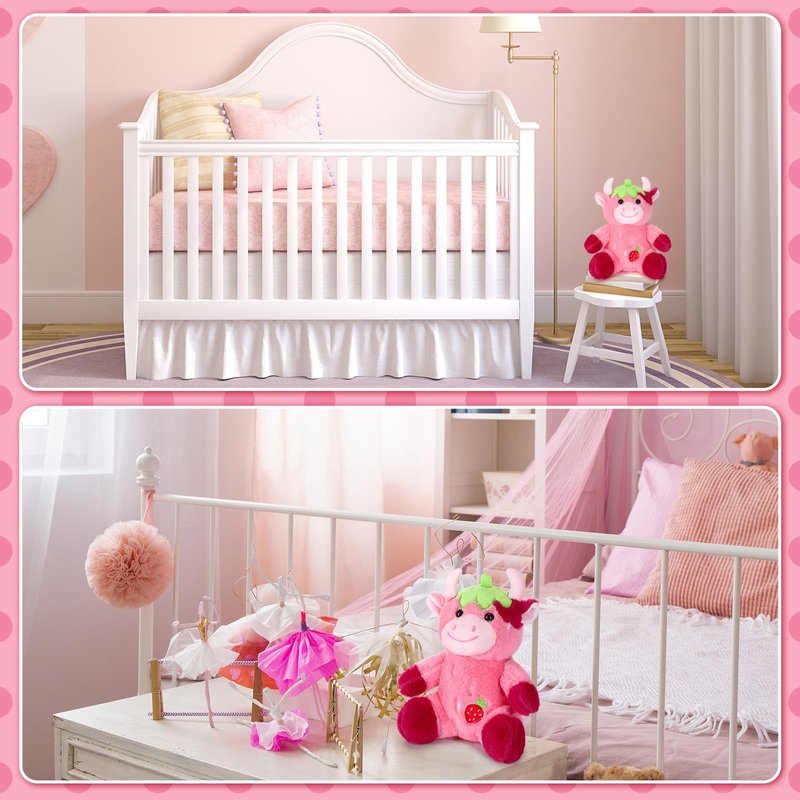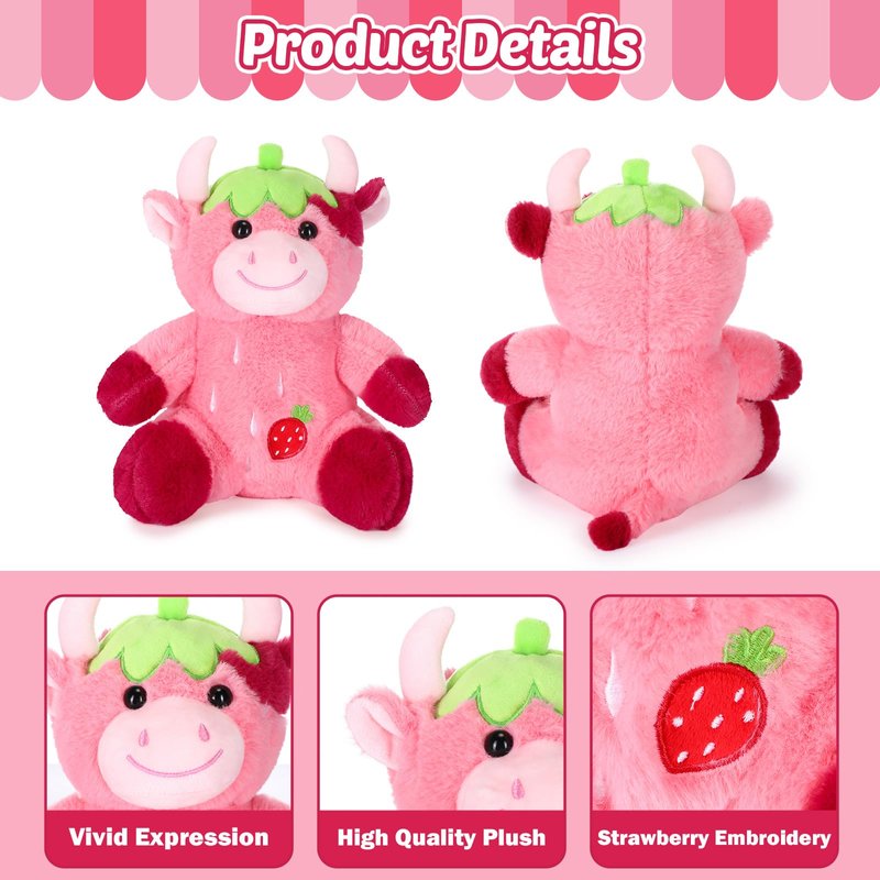 - Cute Cow Plush: this cute cow doll adopts strawberry design, with an overall pink color, strawberry embroidered on its body; It is sitting as if waiting for you to hug it, adorable and irresistible, make you feel relaxed, and bring you happiness experience