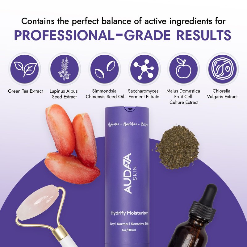 - Nourishing Active Ingredients: Hydrify organic face cream features Green Tea Extract to combat free radicals, Lupinus Albus Seed Extract to boost collagen, Simmondsia Chinensis Seed Oil for deep hydration, Saccharomyces Ferment Filtrate to reduce aging, Chlorella Vulgaris to rebuild collagen, and Malus Domestica Fruit Cell Culture to promote skin regeneration.