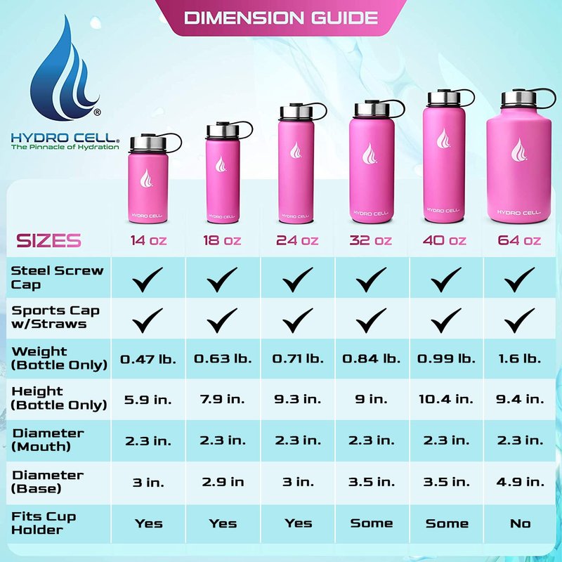 - STYLE: Purchase Includes Stainless Steel Bottle, Screw Cap (100% Airtight), Bonus Sports Cap with Straws (Cold Temp ONLY). Hydro Cell offers the largest selection of matching Paracord Handles, Bottle Boots, and Color Replacement Caps: Sold Separate, Linked Below. Customize your Hydro.