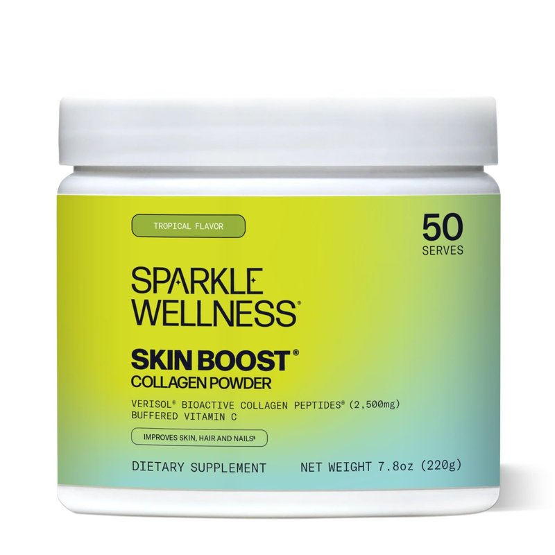 - LOW IN CALORIES - Sparkle Skin Boost Tropical Flavor is extremely low in calories — helps to make sure you get skinny fit. Look forward to healthy skin, hair, nails, teeth, gums, joints, tendons, ligaments, muscles, restful sleep, positive hormone balance, weight loss, and cellulite reduction