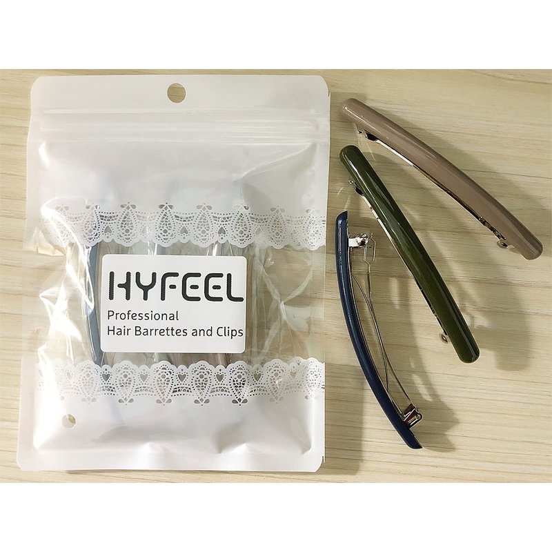 HYFEEL Skinny Hair Barrettes for Women Long Simple Acrylic French Hair Clips Elegant Classic Hairpins Steel Clip Clamp Girls Hair Accessories Navy Blue Dark Green Light Brown 3Pcs/set