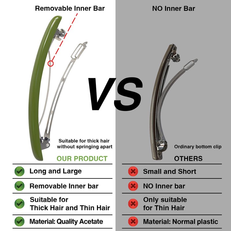 - 【3 PACK 】with 3 different color, they are Navy Blue, Dark Green, Light Brown. With its graceful silhouette and classic style, this slender barrette is the perfect choice for a simple, sophisticated look.