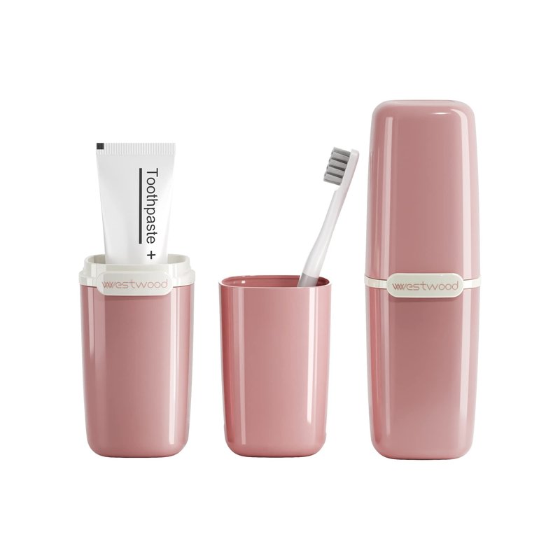 HyJeryty Pink Plastic Travel Toothbrush Holder Case with Cover, Portable Travel Toothbrush Cup, Storage Container for School Camping Business Trip Bathroom