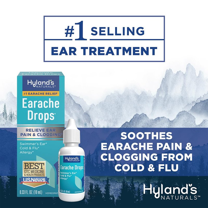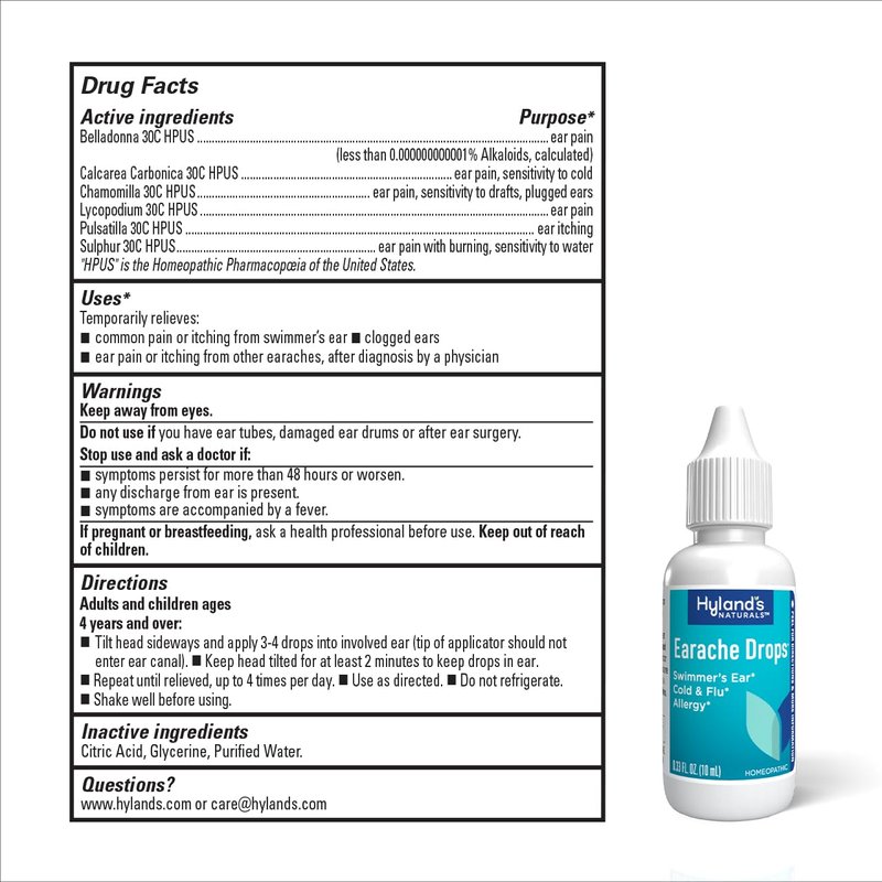 Hyland's Earache Drops, Natural Relief of Swimmer's Ear, Cold & Flu, Allergy Symptoms - Ages 4 & up: (2 Pack)