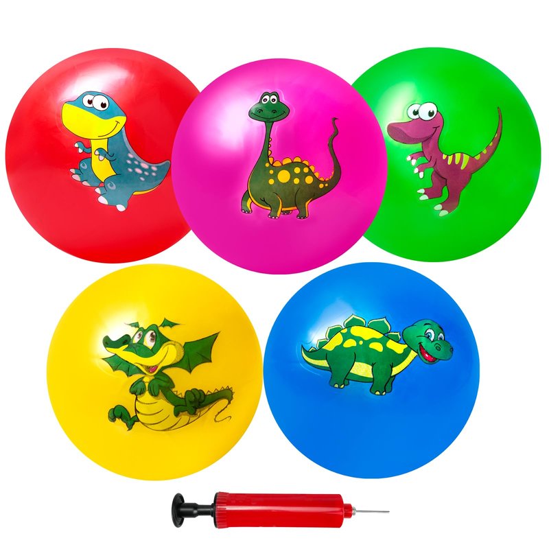 Hymaz 9 Inch 5 Pcs Bouncy Balls for Toddlers, Rubber Inflatable Bouncy Balls for Kids Ball Games, Soft Dinosaurs Sensory Balls with Pump for Indoor Outdoor Beach Playground Backyard Pool Class Games