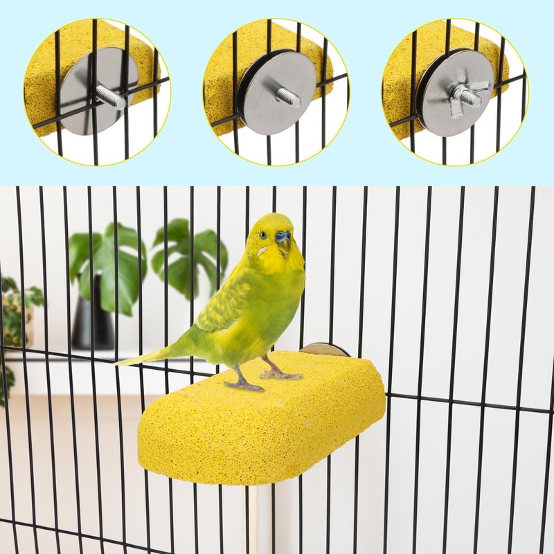 Hypeety Bird Parrot Calcium Teeth Mouth Molar Grinding Stone Hamster Grinding Stone Chew Toy Perch Jumping Stand for Parrot Budgies Chinchilla Squirrel Hamster Cage Stand Platform Yellow