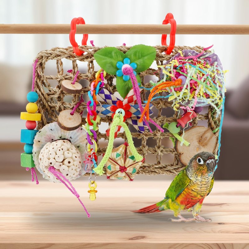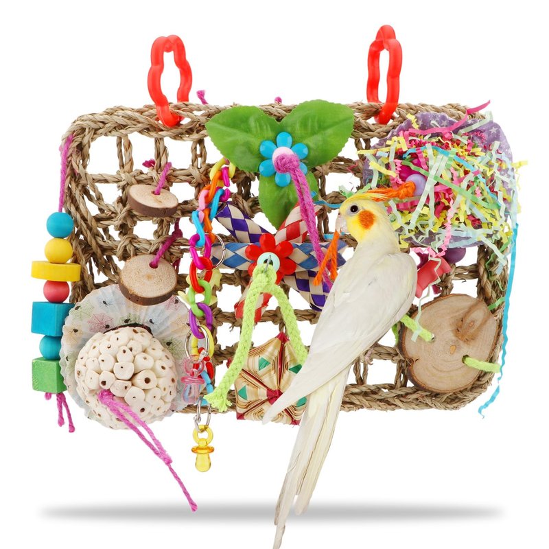 - ❤UNLEASH YOUR BIRD'S NATURAL INSTINCTS: The natural seagrass weaving and the variety of colorful toys are good for unleashing your bird's natural instincts to tear, forage, and chew. Brightly colored toys are attractive enough for birds to climb and chew on.