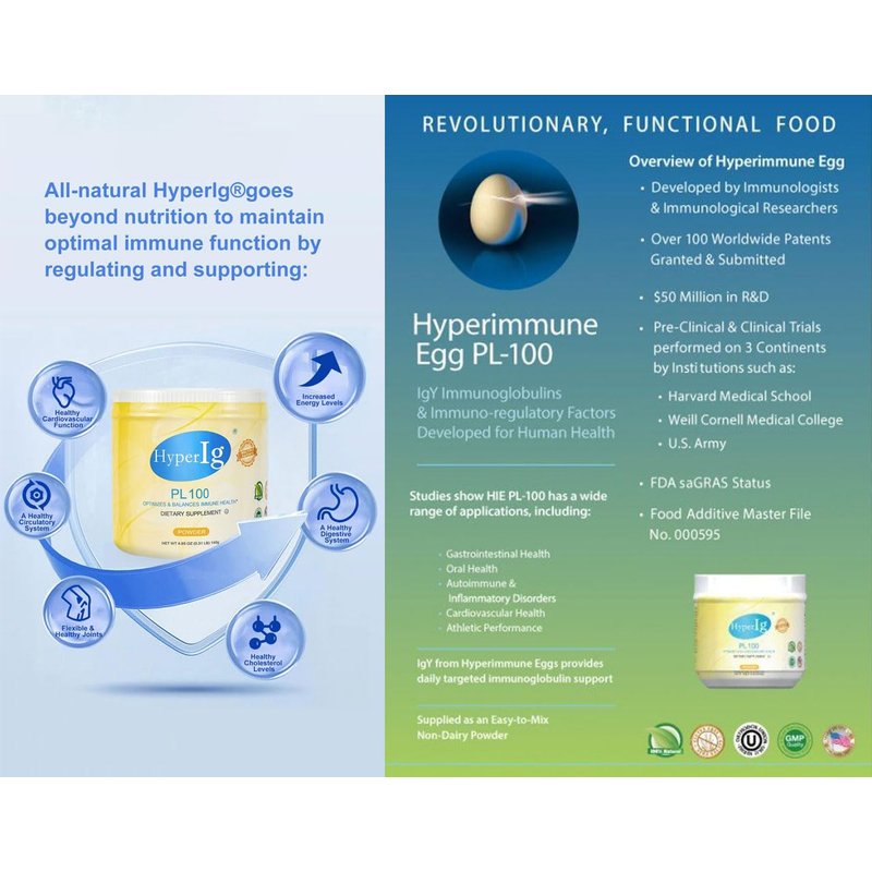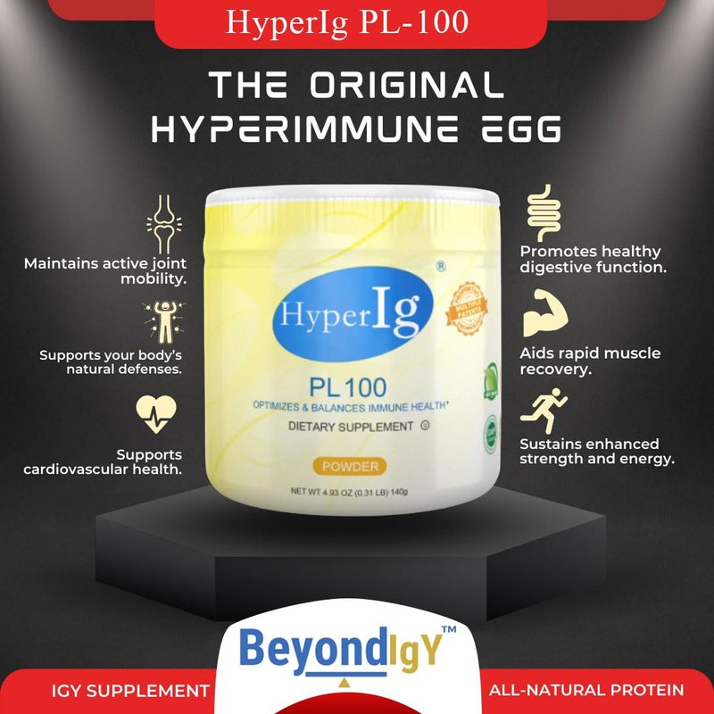HYPERIG PL-100 Protein Powder Original Hyperimmune Egg Supplement - Immune Boost, Digestive Support, Joint Care, Energy, and Muscle Strength in One Formula (4.5g) Servings