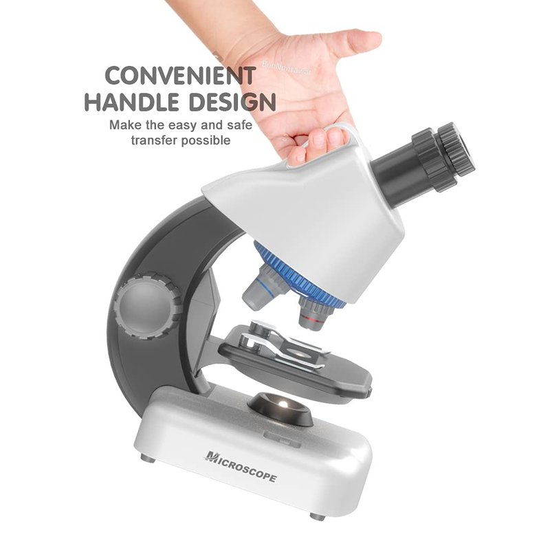 - ⭐ 【Children's Microscope】 Optical compound microscope with transmission LED light source, translucent specimens can be viewed from below illumination. Large focus knob, soft touch eyepiece and adjustable platform. Three levels of magnification and up and down illumination ensure a great view every time!