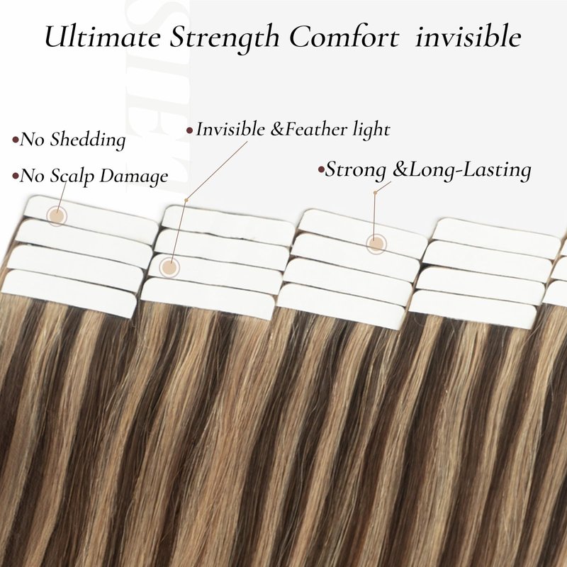 Durable & Long-Lasting: The high-quality tape ensures the extensions stay securely in place for extended periods and are easy to remove and reapply without damaging your natural hair.