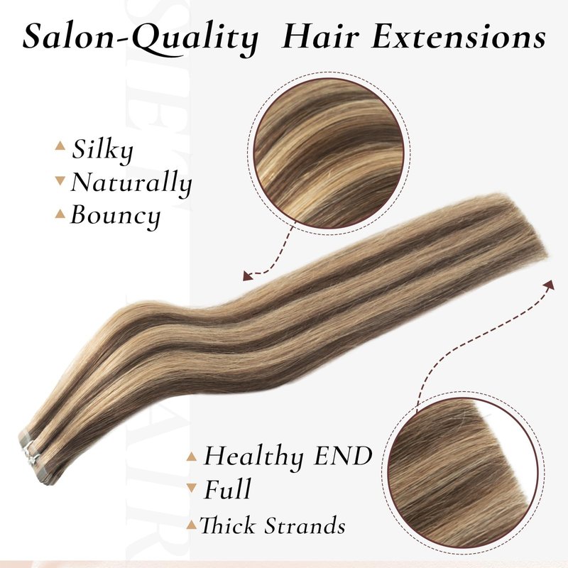 - 【Premium Human Hair Extensions】Hyssiet authentic all natural tape in human hair extensions, naturally colored hair that is thick from top to bottom, tangle-free, and with minimal shedding, these extensions are the first choice of millions of salons around the world.