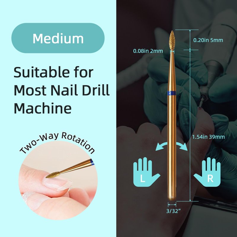 - Professional Russian Diamond Nail Drill Bit: Made of stainless steel , premium uniform diamond particles material, nail bit comes with low vibration, low noise, less dust, and abrasion resistant features. Optimal nail care tool for salon nail techs and nail enthusiasts.