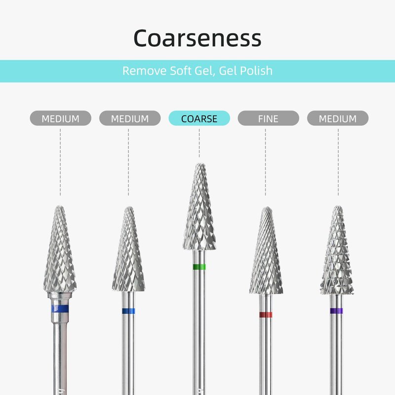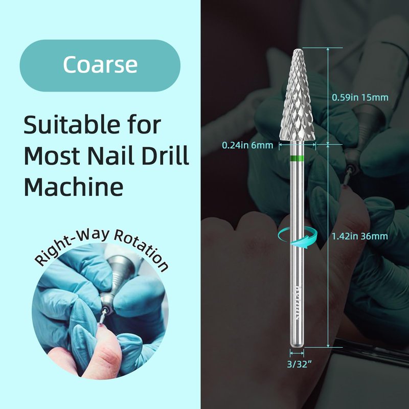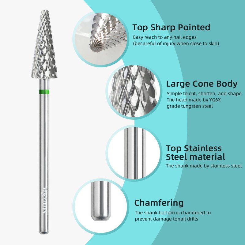- hytoos large taper nail drill bit, regular cross teeh cut design, can fast to remove nails gel works, top cone teeth can use for fingernail edge gel and cuticle clean. Teeth Cut Grit from F, M, C, choose correct teeth, Suitable for natural nails, artificial nails, acrylic nails, gel nails, nail extensions, cuticle removal, nail polishing, nail shaping, etc. meeting your different needs for nail art design.