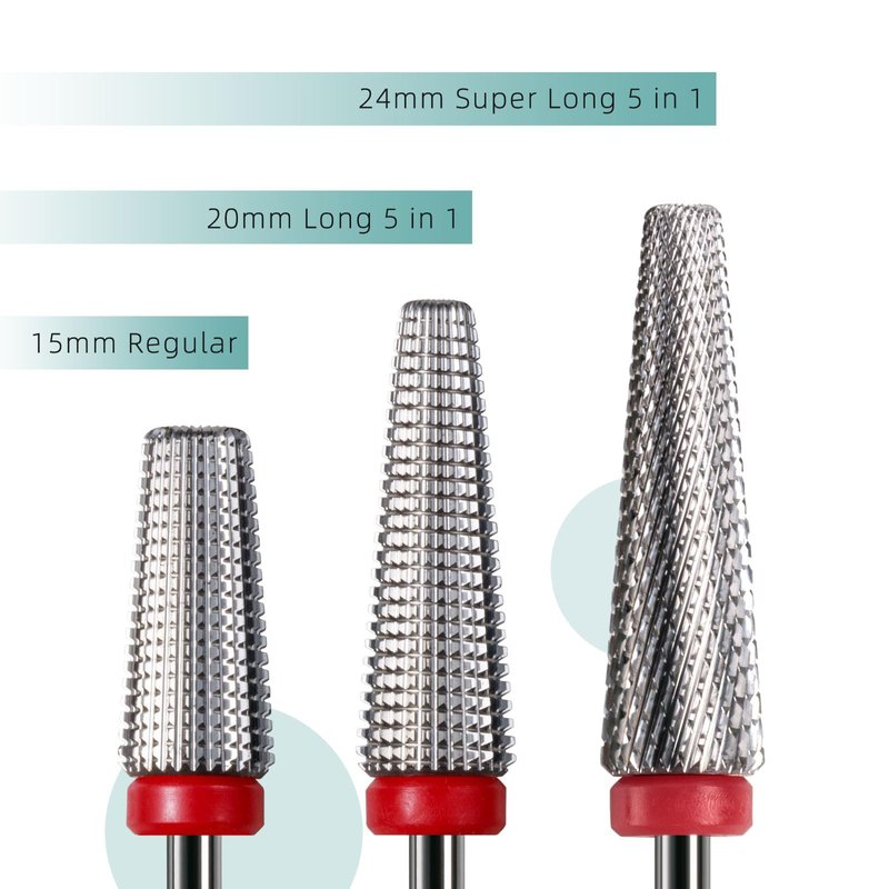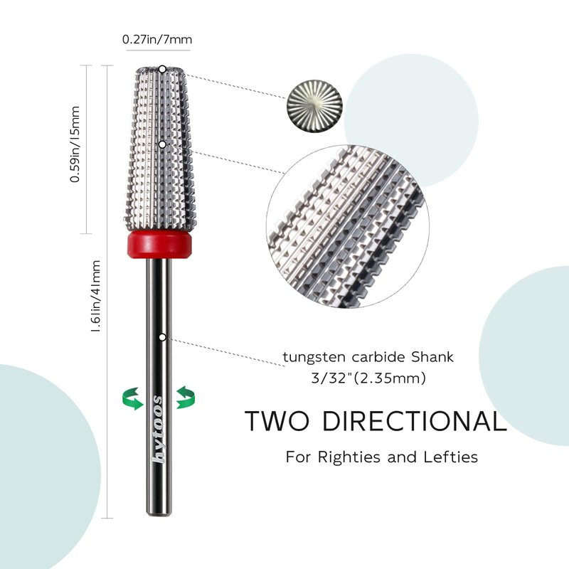 HYTOOS Fine 5 in 1 Nail Drill Bits, Safety Carbide Nail Bit, Straight Cut Tapered Drill Bits for Nails, 3/32 Two-way, Electric Manicure Drills Accessories