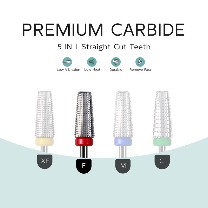 - Easy to use: hytoo 5-in-1 nail drill bit, sharp straight cut teeth and 3-level teeth multifunctional design, each level for different usag. Teeth Cut Grit from XF, F, M, C, XC, 2XC, 3XC, 4XC, choose correct teeth, Suitable for natural nails, artificial nails, acrylic nails, gel nails, nail extensions, polygel, cuticle removal, nail polishing, nail shaping, etc. meeting your different needs for nail art design.