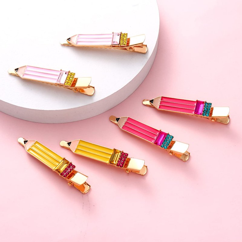 - Guess what!? School is almost back in! Get this super cute pencil hair clips to match with your first day of school!Our Back to school hair clips features classic colors and adorable pencils design,embelished with sparkling rhinestone crystals and rainbow enamel.They're also just a fun way to add a touch of color to any school outfit,Worn alone or layered for a fun, trendy look.