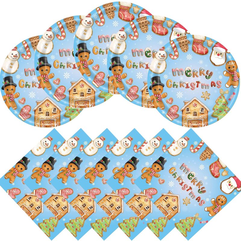 Hzleyw Gingerbread Christmas Party Supplies Paper Plates and Napkins Gingerbread Man Christmas Disposable Dinnerware Set, Christmas Dinnerware Set, Merry Christmas Party Decorations Serves 20