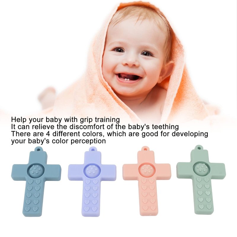 Hztyyier 4PCS Baby Teether Easy to Grip Cross Shape Colorful Infant Chew with Silicone Lanyard for Boy Girl Newborn Gift Soothing Toys