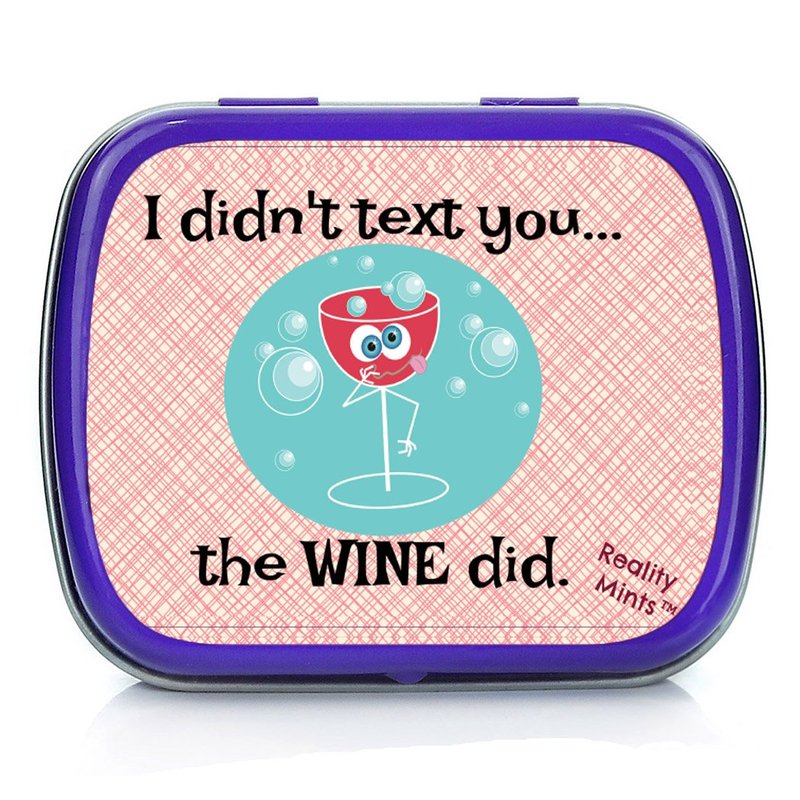 - WINE…FEELINGS…SMARTPHONE…YIKES - Fortunately, there’s a mint for that. If that merlot got a little too chatty last night, I Didn’t Text You The Wine Did Mints place the blame where it belongs…as far away from you as possible.
