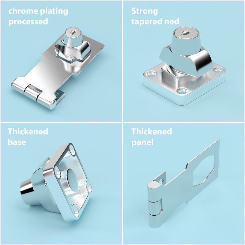 I-EASYDWW, Keyed Hasp Locks, 4 Inch, 2 Pack, Twist Knob Keyed Locking Hasp, Cabinet locks, Cabinet locks with keys, For Drawer, Cabinets and More, Zinc alloy with iron chrome plating, Silver