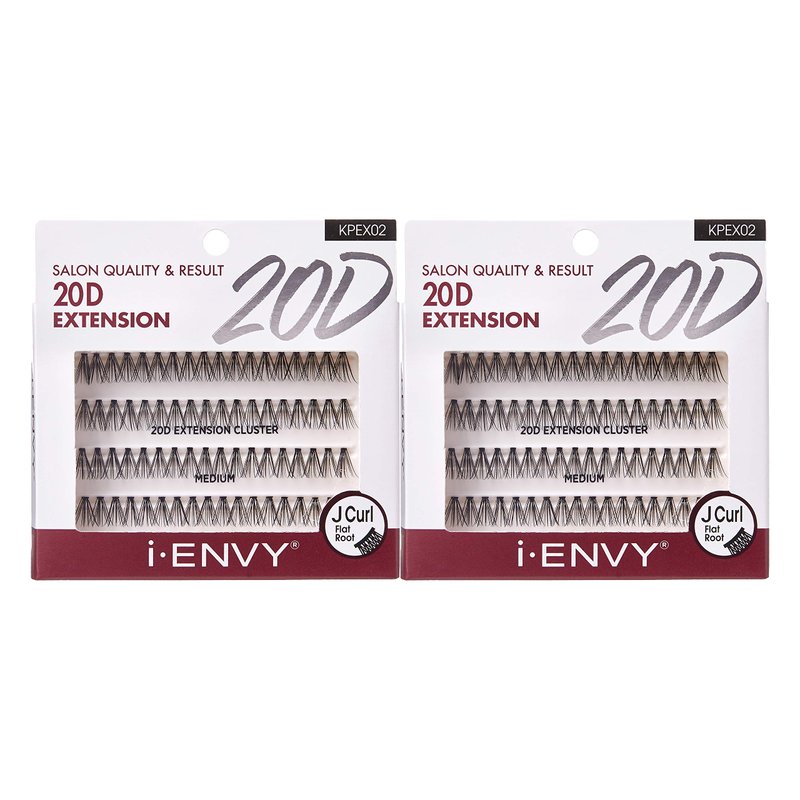 i-ENVY 20D Extension Cluster Individual Lashes (Medium, 2 PACK) Flat Root Seamless Application Perfect For DIY Lash Extension