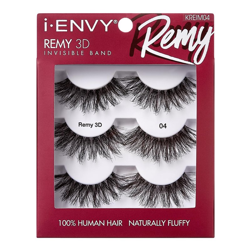 i-ENVY False Lashes, Remy 3D Lashes Value Pack Human Hair Natural Fluffy Wispy Invisible Band Seamless Look Reusable Eyelashes (04)