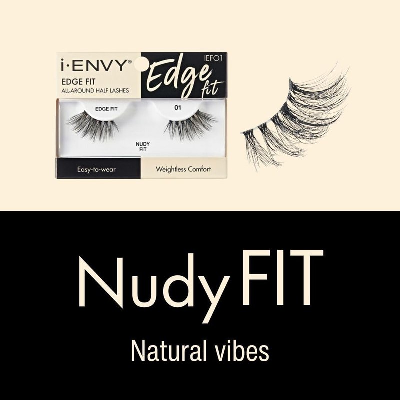 i-ENVY Half Lashes, Edge Fit False Eyelashes Natural Dramatic Look Wispy Cat Eye Clear Band Fluffy Volume Soft Strip Short Half Fake Eyelashes Light Weight Comfort Everyday Easy to Wear (NUDY FIT)