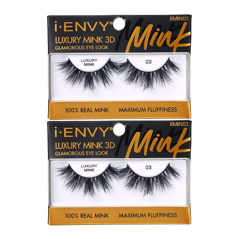 i-ENVY Luxury Mink Collection False Eyelashes 100% Real Mink Glamorous Eye Look Lashes Maximum Fluffiness 3D Multi-Curl Angle (2 Pack)
