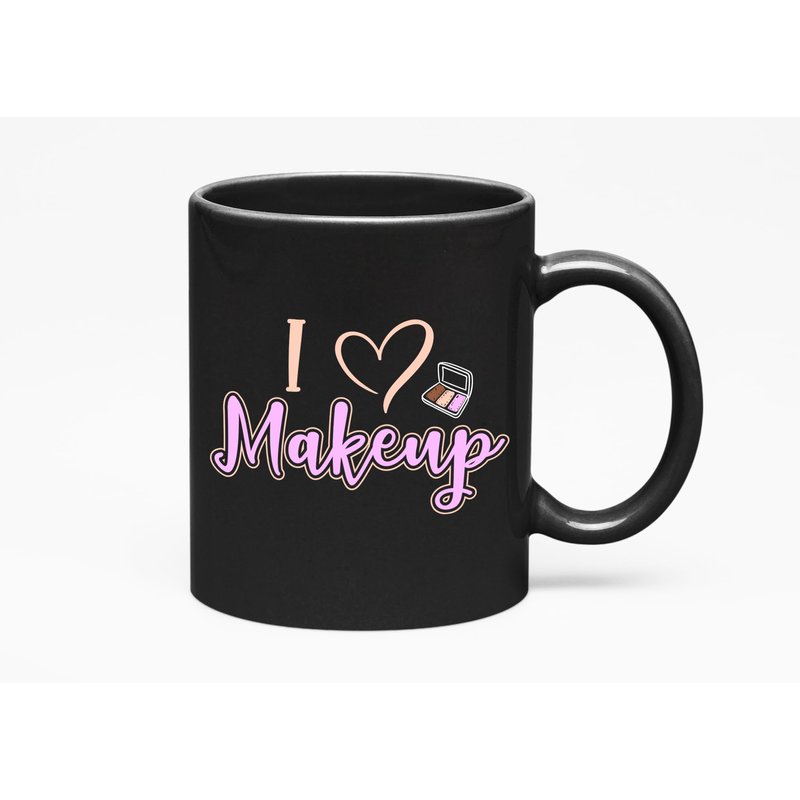 I Heart Makeup with Eyeshadow Palette, Makeup Artist or Lovers, Cosmetologists & Beauticians, Black 11oz Ceramic Mug