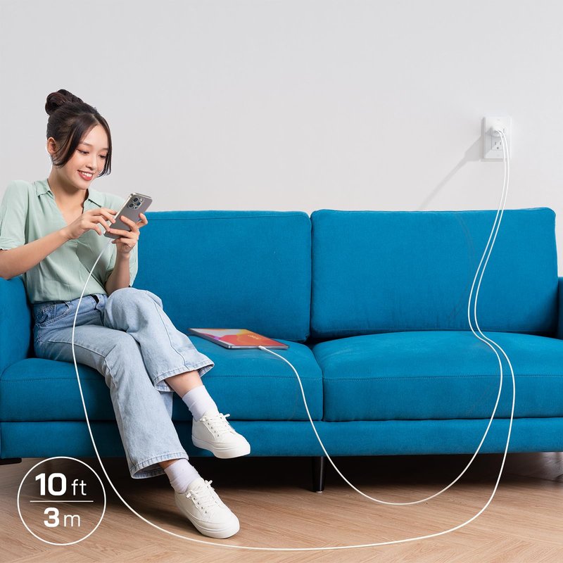 2 X 10FT Type C to C Cable: The dual port i Phone 15 charger fast charging kit come with 2-Pack 10ft i Phone 15 pro charger cord, charge your device with 3A fast charge technology extra long charging distance is sufficient to meet the needs of any charging scene.