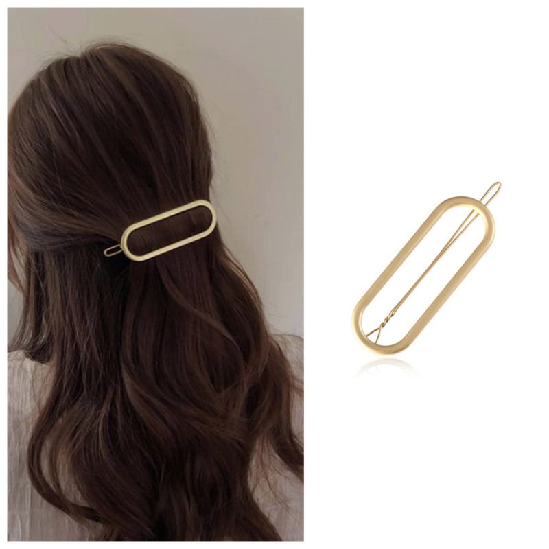 Iaceble Minimalist Oval Hair Clip Hairpin Gold Oval Circle Hairclips Metal Geometric Hairpin Barrette French Ponytail Holder Hair Clips Decorative Hair Accessories for Women and Girls Headdress