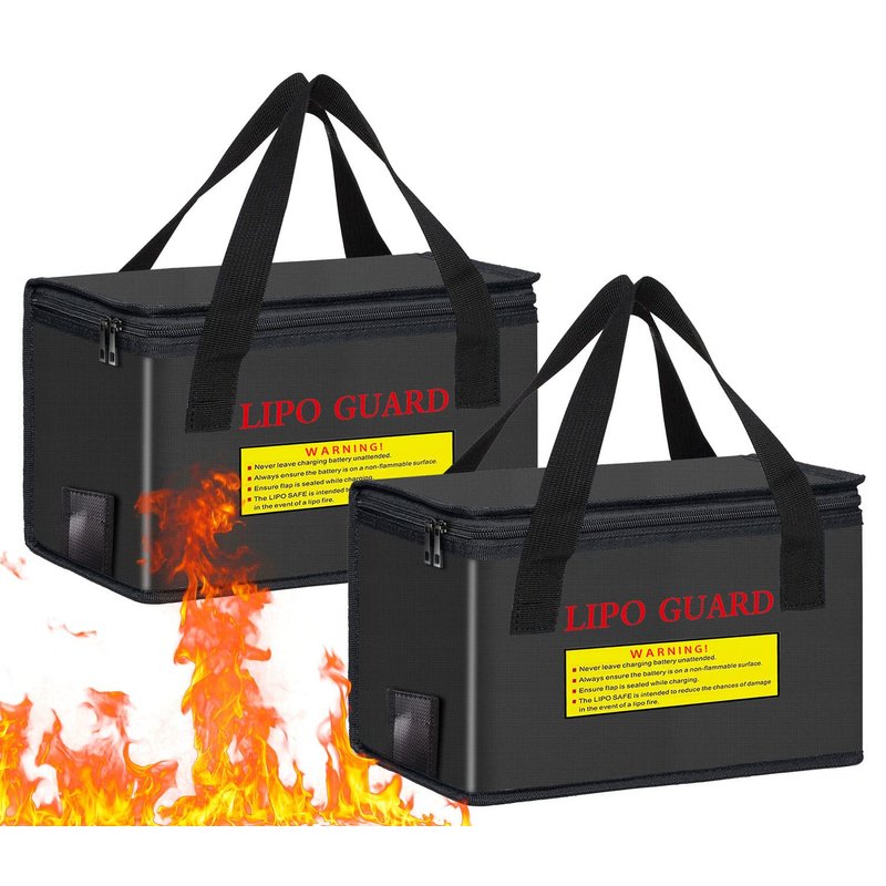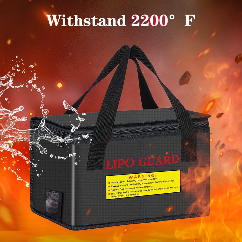 - 【 Large Size】260*130*150mm Lipo Safe Bag, it can store various Lipo Battery Pack. Battery combustion can produce 1000 ℃ Max , serious harm to life and property. You should use battery bag to store transport batteries and keep them in the bag while charging.The purpose of this bag is to contain that fire while the burning is happening. It are used to prevent the flame from spreading and starting a bigger fire.